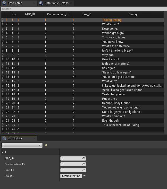 Other: Game optimization, in-game audio scripting, player systems, inventory systems